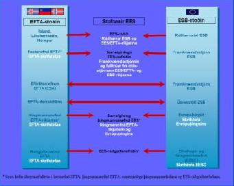 Stofnanalegum samskiptum fríverslunarsamtaka Evrópu (EFTA) og Evrópusambandsins á grundvelli EES-samningsins er gjarnan lýst sem tveggja stoða kerfi. Önnur stoðin er samsett úr stofnunum EFTA en hin úr stofnunum ESB. Á milli stoðanna tveggja eru sameiginlegar stofnanir samningsaðilanna sem eru vettvangur samstarfs...