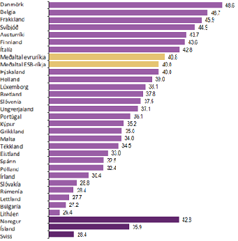 Nú hefur ESB reiknað út skattbyrði landa sinna fyrir árið 2011, hvert er hlutfall Íslands til samanburðar?