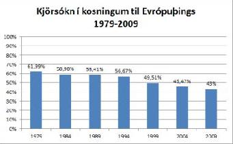 Hver hefur þróun kjörsóknar í kosningum til Evrópuþings verið frá upphafi?